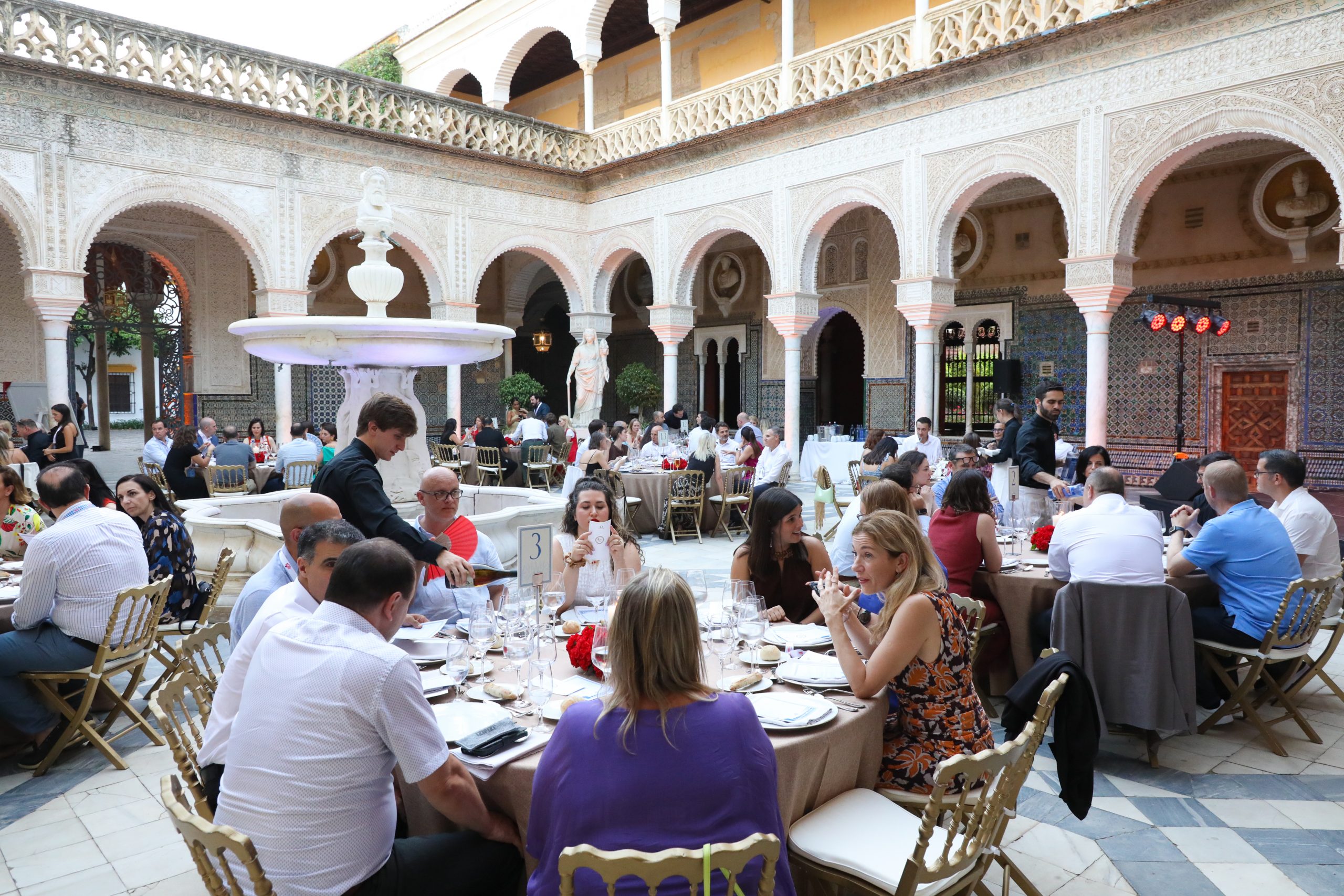 El cierre del evento estuvo marcado por una cena de gala celebrada en la emblemática Casa de Pilatos, donde los asistentes disfrutaron de una experiencia única que combinó gastronomía de alto nivel con un espectáculo de baile y cante tradicional sevillano, reflejando la esencia y el espíritu de la región anfitriona.